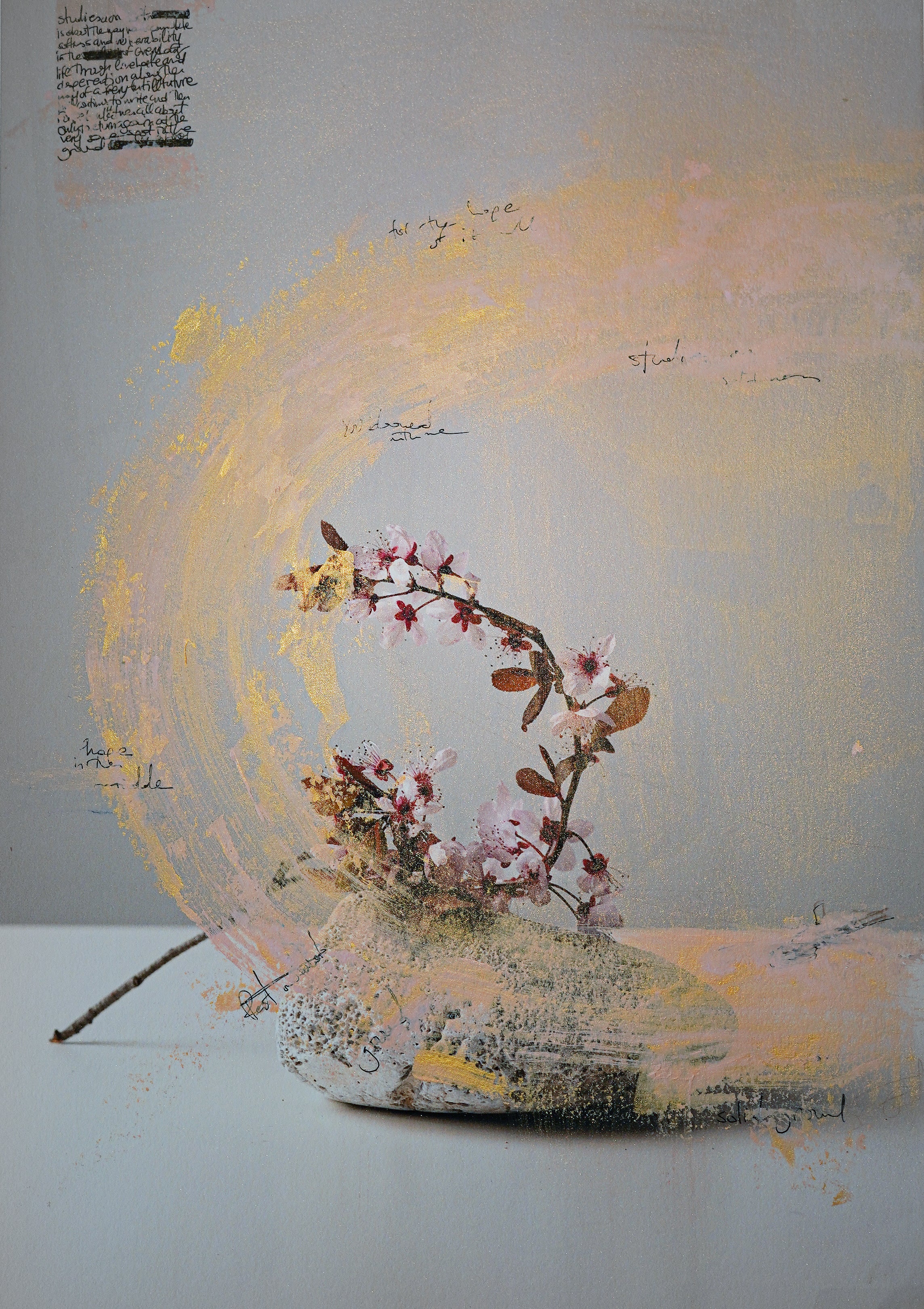 By creating images photographic and mixed media ones, or small objects such as jewelry pieces, I am both composing unique moments of symbolic acts and opening a direct conversation between myself and the audience.